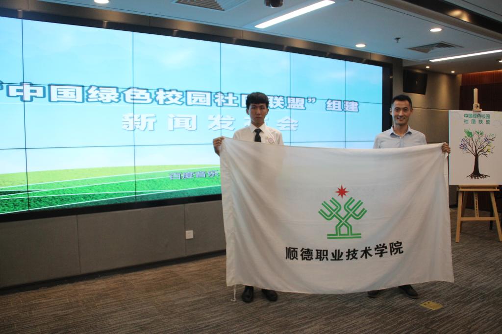 6月16日,由教育部学校规划建设发展中心主办的“中国绿色校园社团联盟”组建新闻发布会在北京顺利召开,教育部、发改委、团中央、住建部、环保部、国管局等部门领导参加了会议。清华大学、北京大学、浙江大学、武汉大学、顺德职业技术学院等35所大学共同发起成立的中国绿色校园社团联盟正式开始组建,我校作为全国唯一一所受邀的职业院校,选派后勤管理处高志明老师及学校社团联合会学生代表参加了座谈会及新闻发布会,并就学校“绿色校园建设及绿色社团成长”做了典型发言。