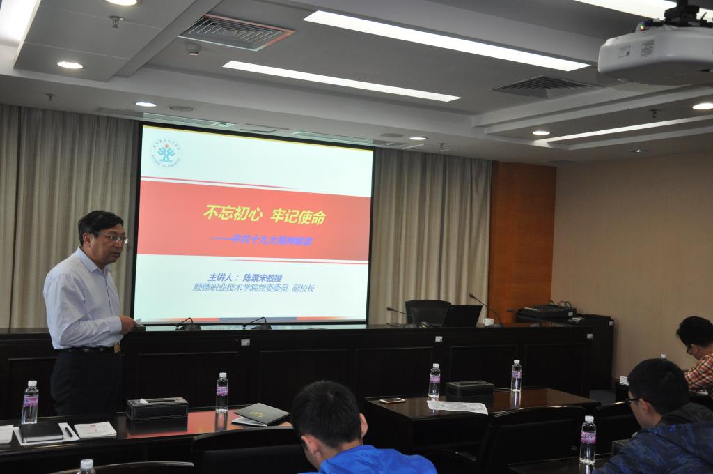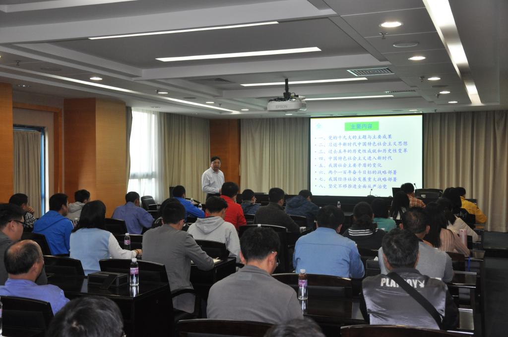 2018年1月3日,新年伊始,学校党委委员、副校长陈粟宋教授在行政楼507会议室,作了题为“不忘初心,牢记使命——中共十九大精神解读”专题报告。后勤管理处党支部全体党员以及职工50余人参加了学习。报告由后勤管理处党支部书记饶喜明同志主持。