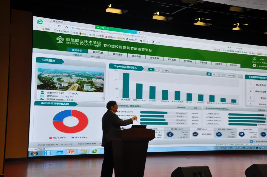 陈粟宋副校长通报高职高专分会理事单位代表变更情况后,并作了题为《推进落实能效领跑,打造绿色智慧校园》的专题报告,报告主要围绕能效领跑者背景、工作建设理念思路、工作重点、工作成效等几大方面展开,为相关兄弟院校推进能效领跑工作提供了经验。