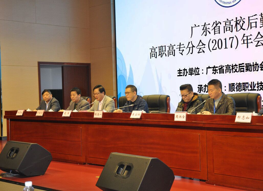2017年12月20日至22日,广东省高校后勤协会高职高专分会2017年会在顺德召开,本次年会由顺德职业技术学院承办。中国教育后勤协会朱宝铜副会长,广东省教育厅学校后勤管理处程五一副处长,广东省机关事务管理局方廷荣调研员、广东省高校后勤协会副会长、高职高专分会主任、广东轻工职业技术学院周炳全副书记等出席了本次年会,88所高职院校领导代表共140多名学校主管后勤副院长或后勤部门主要负责人、12家企业代表参加了会议并进行了产品展示。这次会议分2017年年会、领导致辞、专家专题报告、分组讨论、相关院校经验分享、相关企业优秀案例分享、大会总结等几大部分。21日上午的年会由广东省高校后勤协会副会长、高职高专分会副主任、顺德职业技术学院陈粟宋副校长主持。