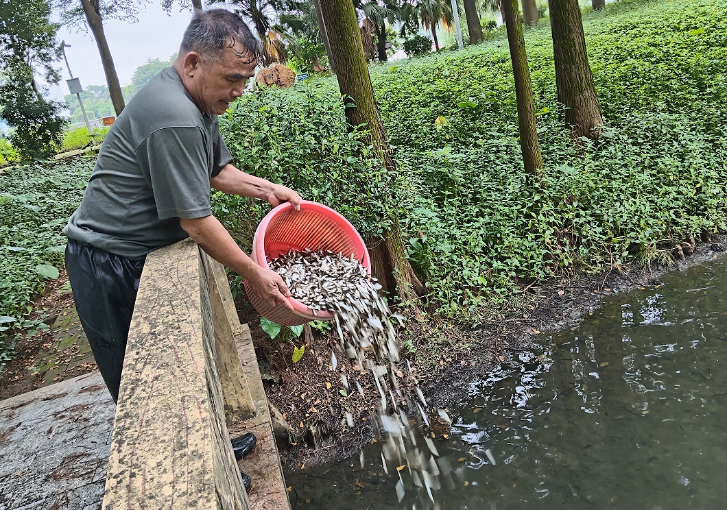 此次投放鱼苗是学校防控基孔肯雅热疫情系列举措之一。此前,学校已全面开展以清除蚊虫孳生地和杀灭成蚊为重点的爱国卫生运动,通过专业消杀、清淤疏堵等措施,有效降低了蚊虫密度。同时,学校党群先锋队还积极支援周边镇街,参与清除蚊媒孳生地、清理卫生死角、发放宣传单等行动,提升了居民的防蚊灭蚊意识。