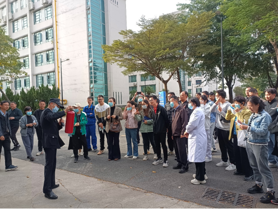 培训中,后勤保卫处工作人员强调了消防安全培训与演练的重要性以及实操演练中要注意的安全问题,详细地讲解了手提式灭火器的灭火原理、使用方法及注意事项,并就如何利用手提式干粉灭火器扑灭初起火灾进行了现场示范。