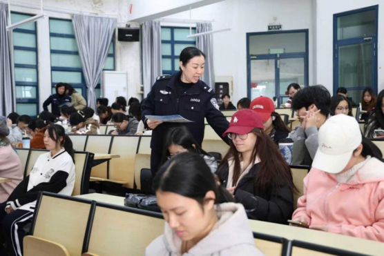 随后,公安民警结合近期高发的诈骗案例,详细剖析了网络刷单返利、虚假投资理财、冒充客服退款、冒充公检法办案、校园贷等常见诈骗类型的作案手法和套路,清晰梳理每一种骗局 “诱惑-套取-诈骗”的完整链条,让师生深刻认识到诈骗行为的隐蔽性。