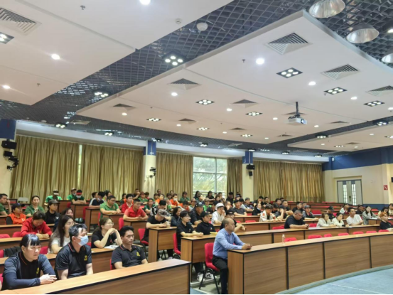 为深入贯彻落实食品安全“四个最严”要求,全面压实校园食品安全主体责任,规范食堂全流程操作管理,切实保障新学期全校师生饮食安全,近日,学校后勤保卫处组织召开2026年春季开学食品安全培训工作会议。会议特邀顺德区市场监督管理所技术骨干现场授课,后勤保卫处相关负责人、校园食堂负责人、食品安全总监、安全管理员及全体从业人员等130多人参加培训会议。